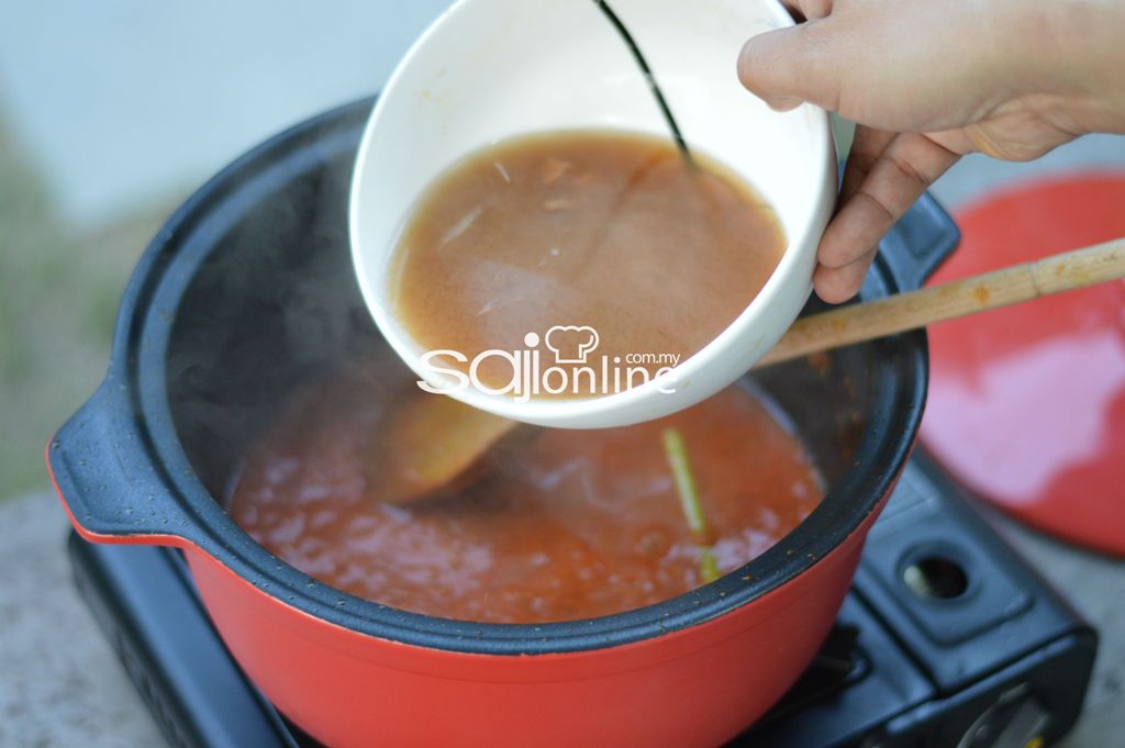 3. Kemudian titikkan serai dan tuangkan pula air asam jawa.