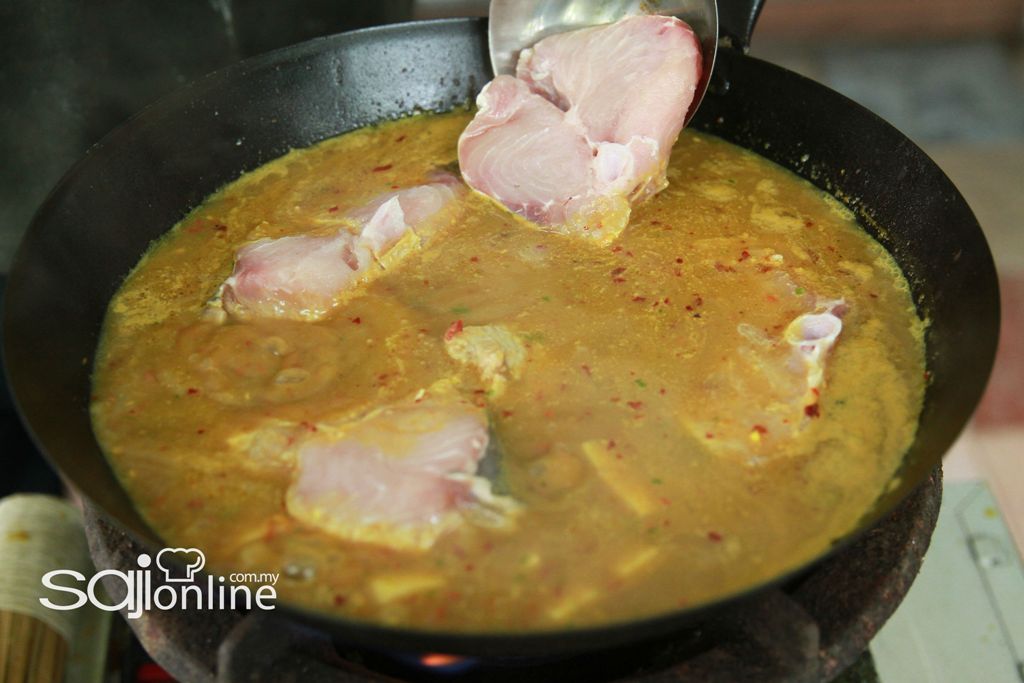 3. Setelah sebati, masukkan pula ikan jenahak dan biarkan mendidih.