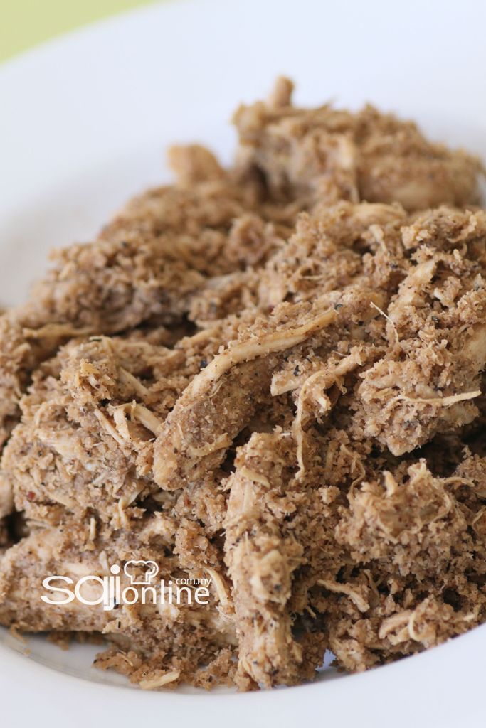 - Carik isi ayam dan jika ada lebihan air rebusan ditapis.