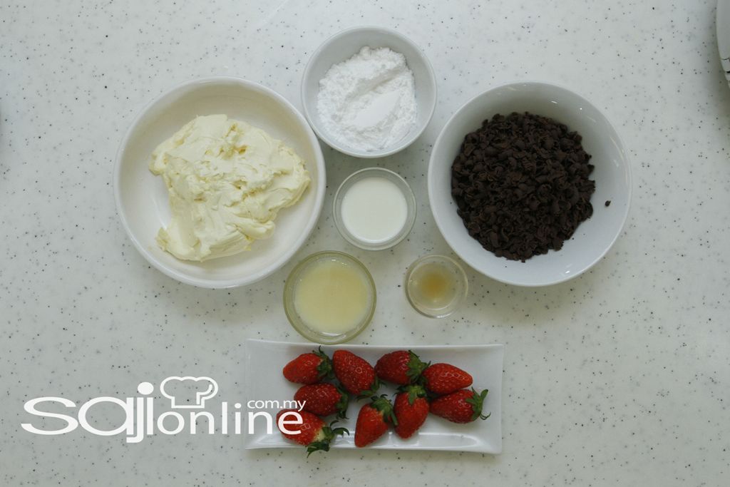 Hiasan : coklat parutan dan buah strawberi