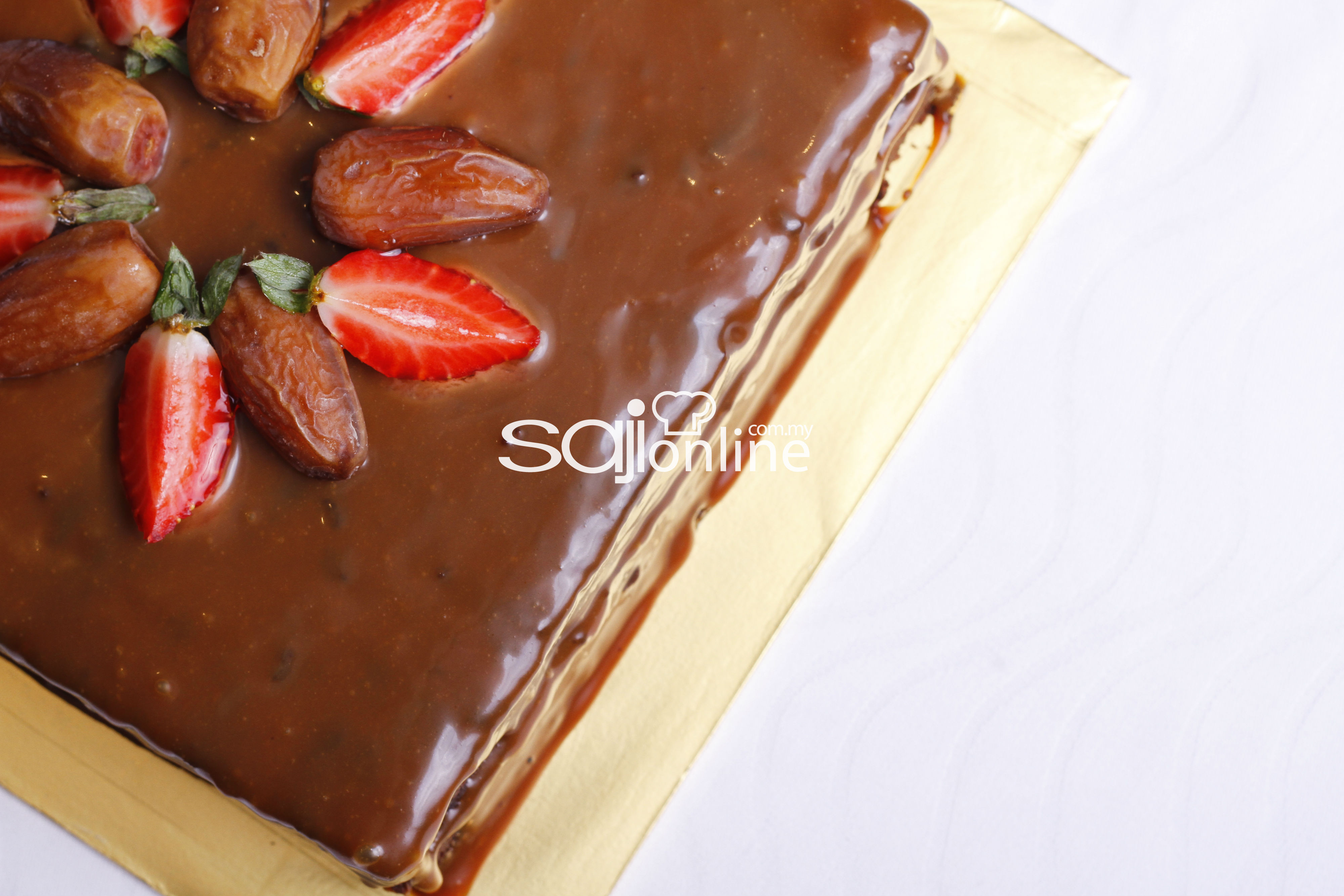 - Tuangkan karamel ke atas kek dan sedia dihidangkan. Hiaskan.