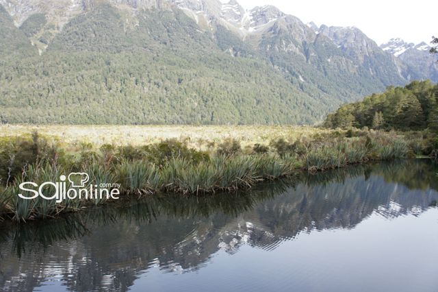Berbalik kepada perjalanan, 2 jam mungkin tempoh yang agak lama, namun pemandangan yang terbentang di depan mata membuatkan setiap detik cukup berbaloi. Terpana dengan keindahan yang superb! Lepas satu-satu mata dijamu, daripada lokasi penggambaran Lord Of The Ring, Glacier, Mirror Lake hinggalah ke sungai yang membiru…subhanallah, tak mampu nak diucapkan dengan kata-kata. SAJI hanya mampu melompat bintang dek kegembiraan terlampau.