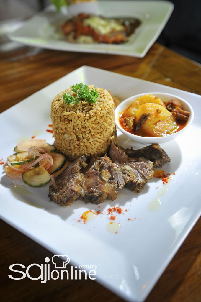 Jika anda berkira-kira mahukan menu berat, apa kata mulakan dengan Grilled Chicken Chop. Harganya juga cukup munasabah, hanya RM12.90. Gabungkan ayam, kentang putar dan sos lada hitam bersama, memang nikmat oiii. Jika tidak pun, boleh mencuba Nasi Daging Air Asam, salah satu menu popular di sini.