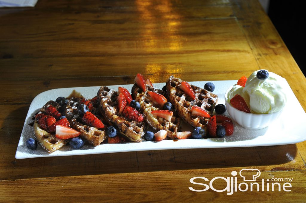 Dan satu lagi kehebatan café hipster ala elegan ini adalah Special Waffle Ice Cream. Wow! Terpaku seketika saat hidangan tiba di depan mata. Cukup menawan dan ‘jelita’ sekali persembahannya. Terasa sayang untuk menjamah. Indah mata memandang, indah lagi kenikmatan merasainya. Kerangupan waffle digabungkan bersama aiskrim vanilla dan saduran coklat, terbaik.