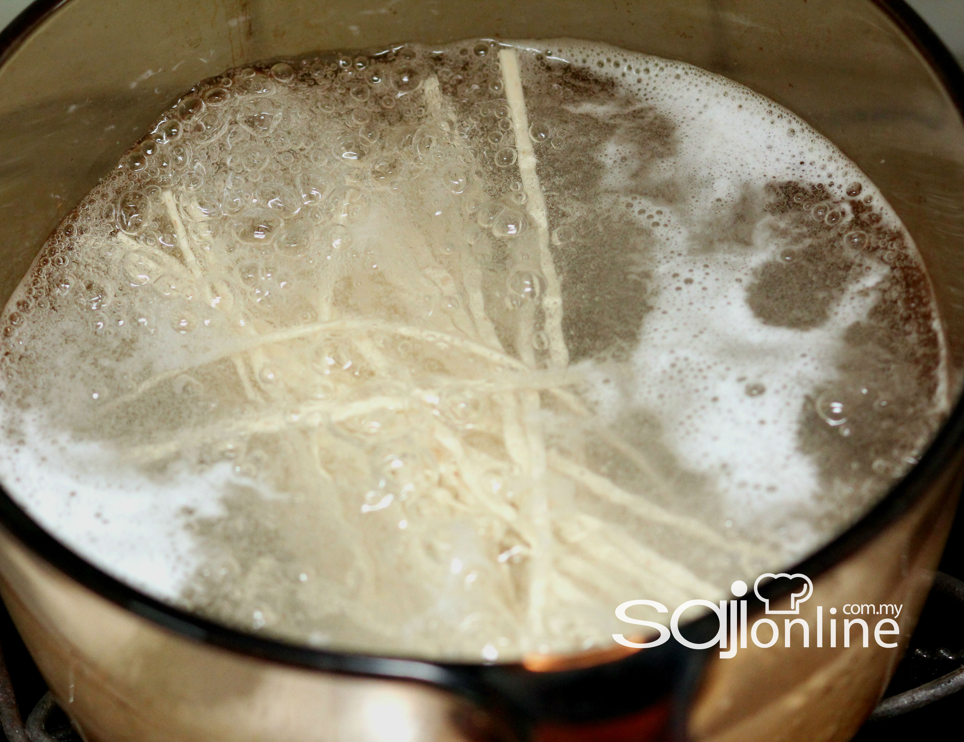 1. Celur mi lidi sehingga lembut. Angkat dan tuskan.