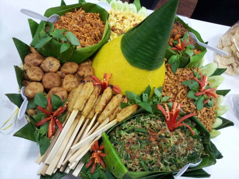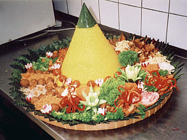 Nasi tumpeng yang tidak asing di kalangan masyarakat Indonesia merupakan nasi semangat berwarna kuning berbentuk kon. Ia disajikan dengan pelbagai lauk dan biasanya nasinya dikukus.