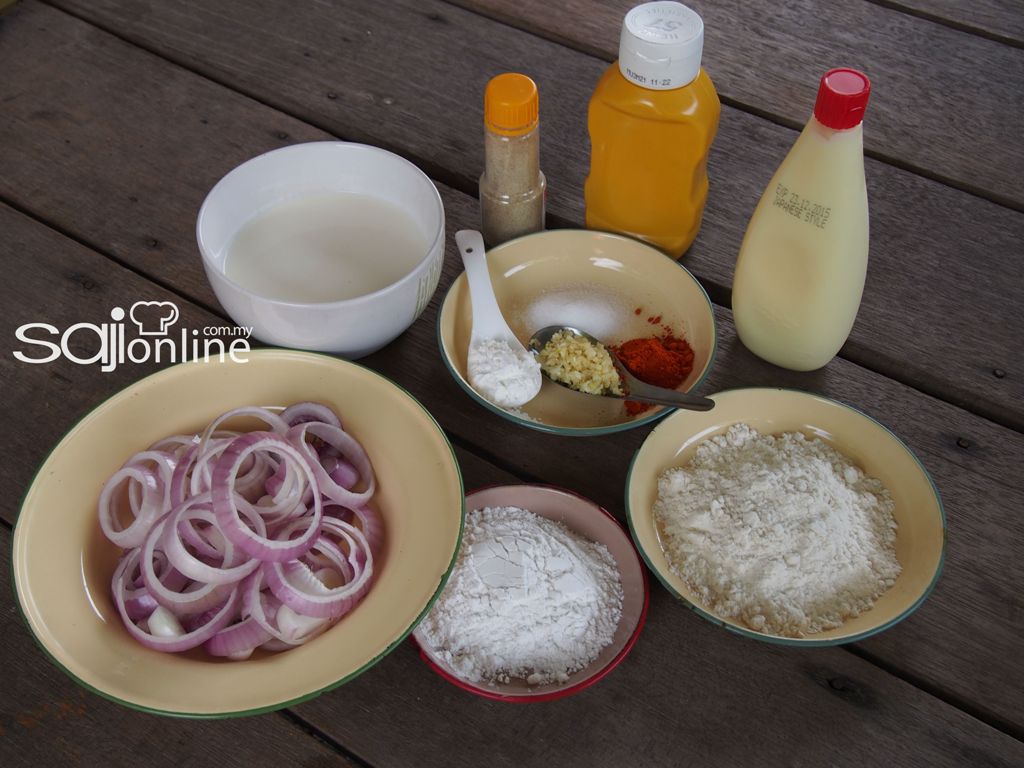 Rendamkan bawang besar yang dipotong ‘ring’ bersama susu UHT selama 5-10 minit. Kemudian keluarkan bawang dan asingkan susu tersebut.
