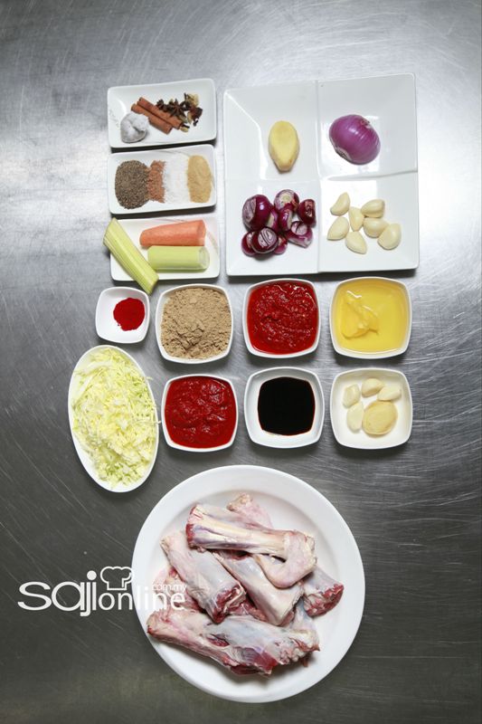 1. Di dalam periuk, reneh tulang kaki kambing sehingga empuk. Ketepikan. Panaskan minyak dan minyak sapi.Tumiskan rempah 4 sekawan dan bawang besar. Kacau hingga wangi.