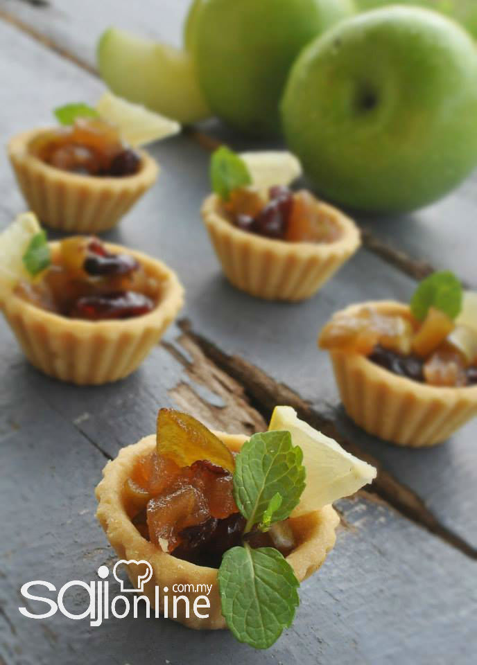 2.  Ambil sedikit adunan dan tekan ke dalam acuan tat. Cucuk dengan garpu sebelum dibakar.  Bakar pada suhu 170⁰C selama 20 hingga 25 minit atau sehingga masak.  Sejukkan.